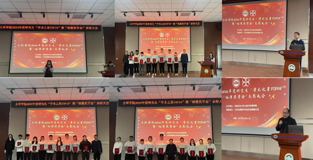 2024年学院取得了丰硕的研究成果,尤其是重大科研项目和高水平论文得到提升,研究生在各类学术创新竞赛中屡获佳绩,这些成绩凝聚着全院师生的努力担当和潜心科研。经过评审研究生常艺、路宗林、孙志宇、高妍获博士组一等奖,张嘉桐、袁雷、吴能祥、李天娇获硕士组一等奖;韩昌东、杨熙、刘晓晨、赵浩东、曾楠、马玲获博士组二等奖,邵帅、郝飞、矫思宇获硕士组二等奖;任立军、卢彤、靳文娟、张宇飞、王楚翘获博士组三等奖,阿娜尔、王祥国、王红红、才佩玄获硕士组三等奖。会上同步发行了《研学土环学术简报》。