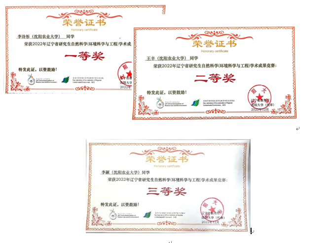 近日,第22届中英资源与环境协会年会暨“2022年辽宁省环境科学与工程研究生学术论坛”自然科学学术成果竞赛奖获奖名单公布,学院3名研究生分获一等奖、二等奖、三等奖。